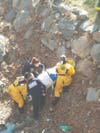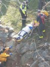 "Upon arrival, a male was observed sitting on the side of the riverbank being assisted to by a civilian," wrote fire officials in a statement. Fire department personnel had cold water survivor suits on and made their way across the river to attend to the male. At this time, it was determined that the male had received a head injury due to the twelve foot fall down the river bank. The male patient was loaded into a stokes basket; a carrying devise used to remove people from confined spaces or slopes."