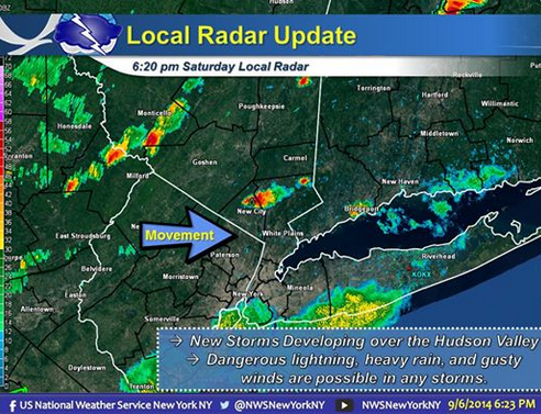 NATIONAL WEATHER SERVICE DOPPLER RADAR INDICATED THAT A THUNDERSTORM WAS RAPIDLY DEVELOPING 5 MILES SOUTH OF BREWSTER, NY AND MOVING EAST AT 20 MPH.