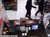 No shots were fired and no one was injured. One suspect is armed with a dark colored revolver as he enters the station and forces the clerk behind the counter after taking his cell phone, police said.