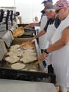 The club can involve as many as 50 members making tomato sauce, creating dough, getting the dough ready, then frying, preparing and selling pizza frittas, freshly made just moments before, and the only dish the club serves. It's a twice-a-year feat, not just of hard work, but of organization and cooperation.