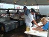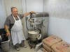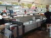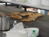 He also designed a trough running down the middle of the stove. Just after the pizza frittas are deep fried, they are put on a wire mesh above the trough. Some of the oil then drains off the food, and at one end of the trailer the trough empties the grease into containers for disposal.