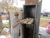 Dominick presented his plan to the club's governing board, which approved funds for it. The club paid for raw materials Dominick used to build the device, and Dominick contributed his own labor for free. He presented the club with the stove-trailer sometime in the mid-1990s, and the machine has been used ever since.