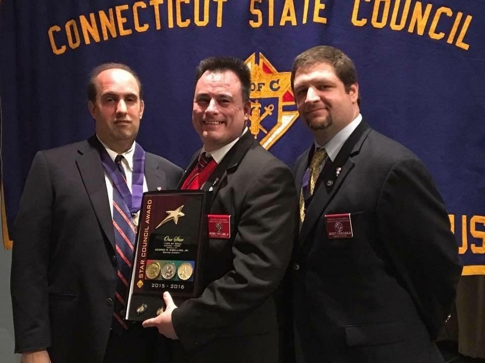 Knights of Columbus St. Matthew Council 14360 of Norwalk, CT has earned the distinction of Star Council for the 2015-2016 fraternal year. The organization’s headquarters located in New Haven, CT, made the announcement. The award recognizes overall excellence in the areas of membership recruitment and retention, promotion of the fraternal insurance program and sponsorship of service oriented activities. The award was presented to the membership by State Deputy John Macari at the Knights of Columbus Museum in New Haven at a special ceremony on November 5th.