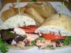 There is a small but respectable offering of salads available (ranging from $9 to $13.50 with side salads priced at $5.50), and for $4 or $6 more you can add chicken or salmon to any salad. Entrées include a hodgepodge of dishes from comfort food (Big Island Meatloaf, $13.75) to Asian specialties (Pan-Asian Noodles, $13) to Hawaiian-themed poultry (Macadamia Nut Chicken, $13.75) to delights from the sea (Pan-Seared Ahi, $15.75).