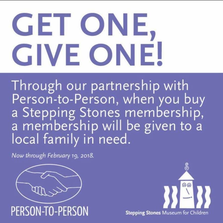 Stepping Stones Museum for Children is thrilled to announce that their partnership with Person-to-Person to provide free museum memberships has been extended through Monday, Feb. 19.