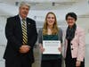 Photo 2: Three Rivers College Foundation Board President Bill Stanley and Three Rivers Community College President Mary Ellen Jukoski present Daria Snoke (center) with the newly established Helen and Joseph Jukoski Memorial Scholarship.