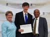 Photo captions: Photo 1: Ann Ahamed and Sully Ahamed present the Ann M. Ahamed Scholarship, a full-tuition scholarship, to Donald Duca (center), a graduating senior from Norwich Tech.