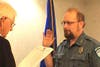 Police Commissioner Don Lewis swore in Rick George, Scott Ellington and Chris Connors as animal control officers for the new Milford/Orange Animal Control on Thursday at the Orange Police Department.
