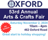 The Oxford Annual Arts & Crafts Fair is hosted by the Oxford Cultural Arts Commission. Our mission to promote and preserve culture and the arts in Oxford and the surrounding communities. For more information you can find us on the web at www.OxfordCulturalArts.org