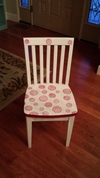 Hand painted custom Childs solid wood chair. Wood be really cute with the two red tables in other post I made pictured below.