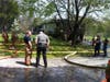 When volunteer fire crews from Oxford and Seymour arrived, they saw the home almost fully engulfed and flames shooting out of the garage, said Oxford Fire Chief Scott Pelletier. Firefighters began aggressively attacking the interior of the home, but fire was causing the roof to fall down, and the ceiling and floors were weakening; firefighters were called out of the house for safety reasons, Pelletier told reporters on scene.