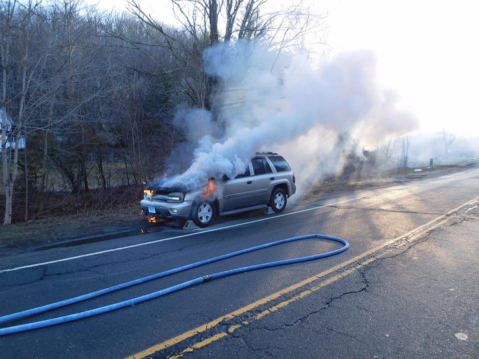 Fire officials say the blaze was in the SUV's engine compartment and that the fire was extinguished and the SUV was towed away.