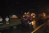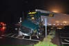 The tractor trailer Mudlock was driving sustained heavy front end damage and was removed by Hilarios Heavy Duty Towing.
