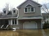 At least one three-family house is covered with water to the bottom of the second floor along Roosevelt Drive, or Route 34, and a Ford Mustang, three pickup trucks and a Jeep are floating with torrents of rain on the Housy.