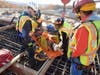 (Image 2)Members of the Oxford Volunteer Fire Department practice real-life emergency situations, strapping a manikin to a stretcher approximately 40 feet above ground level.