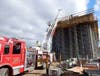 (Image 4) Volunteer firefighters extend the ladder of their firetruck to reach the top of the CPV Towantic Energy Center facility.