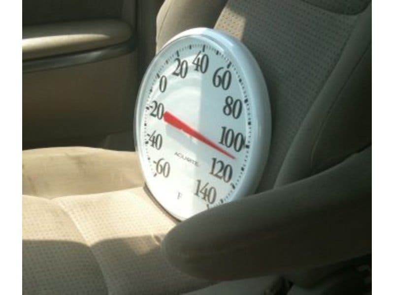 Kids and Cars notes, “Even with the windows partially down, the temperature inside a parked car can reach 125 degrees in just minutes. Leaving the windows opened slightly does not significantly slow the heating process or decrease the maximum temperature attained.”