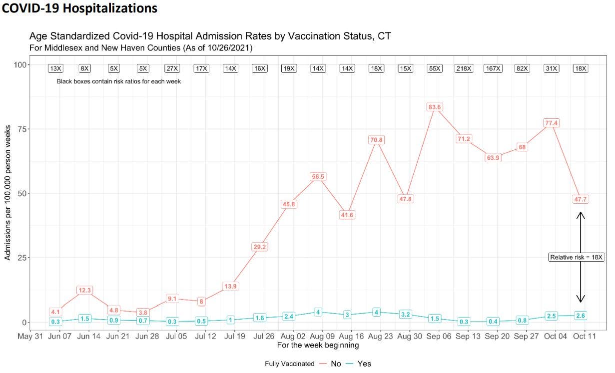 Although coronavirus deaths in Connecticut have declined markedly since February, it is important to note that death — and hospitalization — rates have consistently been higher among unvaccinated persons compared to fully vaccinated persons.