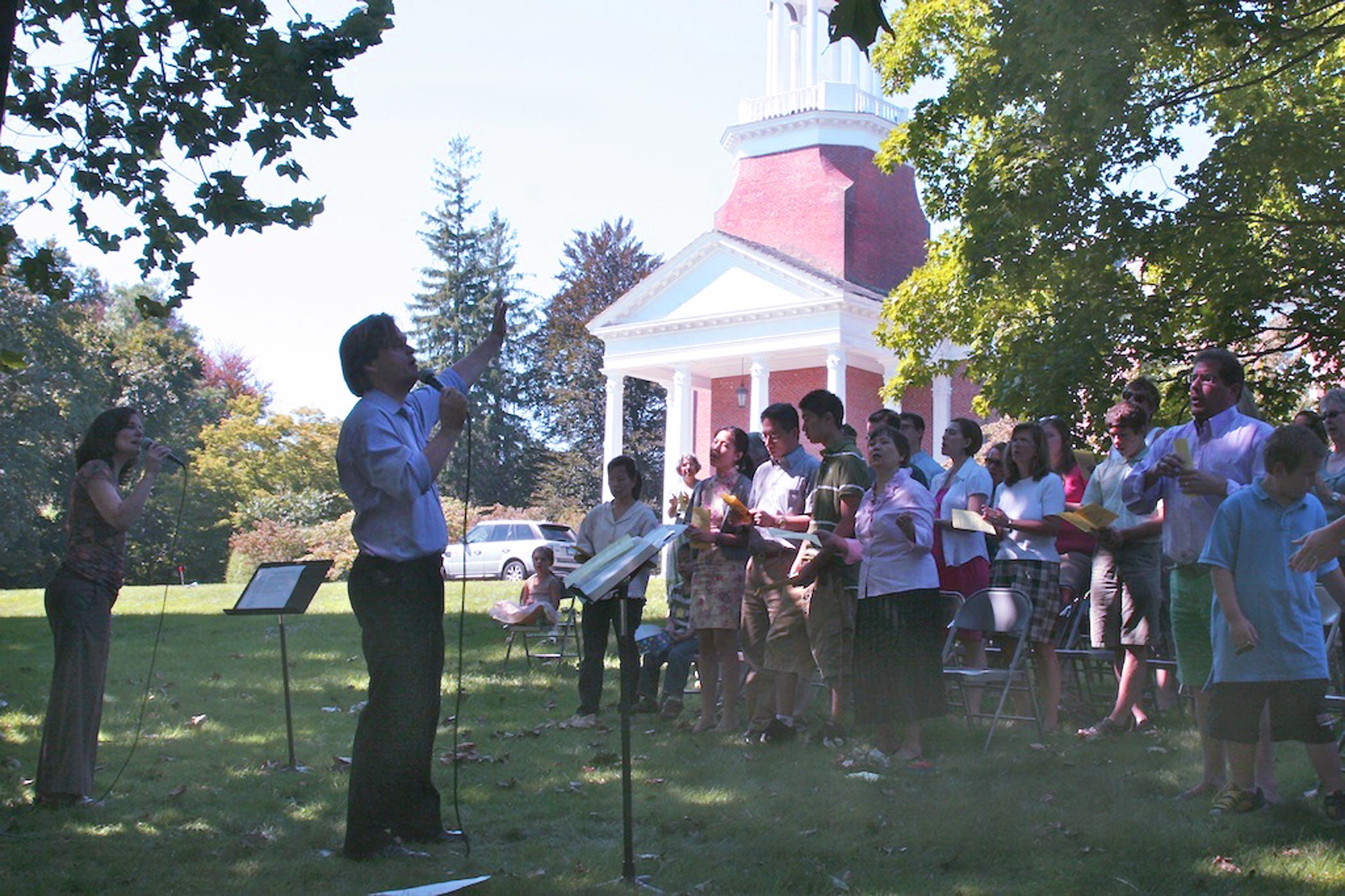 The contemporary services will be held in Jesse Lee's Carriage House, at the west end of the church parking lot. (If the weather is really nice, a select few services will be held on the church's large front lawn on Main Street.)