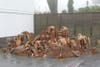Grashow believes that “creation and destruction are married to each other,” so the work has been installed outdoors on the Aldrich’s front terrace to weather and disintegrate slowly over time.