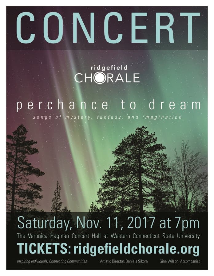 The Ridgefield Chorale is excited to present their fall concert titled “Perchance to Dream: Songs of Mystery, Fantasy and Imagination”. It will be held on Saturday, November 11th at 7pm in the Veronica Hagman Concert Hall at Western Connecticut State University in Danbury. Tickets are currently available for purchase.