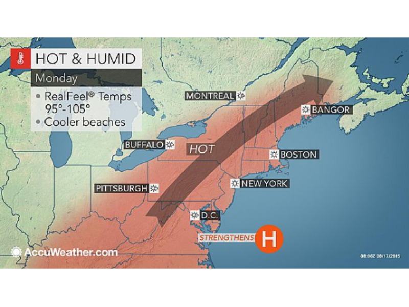On Monday, temps will hit between 90 degrees in southern Connecticut and reach into the mid 90s in northern Connecticut.