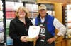 Mr. Scott & Ms. Jogas are shown below, receiving their prizes from Andy Grant, owner of Ace Hardware, and members of the 'helpful hardware' staff!