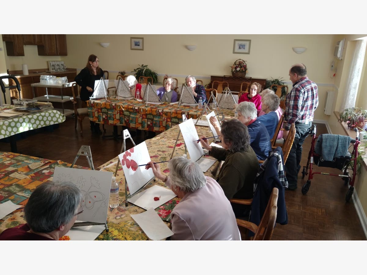 The Belden Forest residents have been taking a painting class with local artist Brian Colbath, known for his landscape scenes of Hartford and the surrounding area. His work has been featured in galleries and juried art shows throughout Connecticut, and he regularly works with businesses, architects, friends and all art lovers. He is now sharing his talents with the residents at Belden Forest, and their paintings are coming along brilliantly.