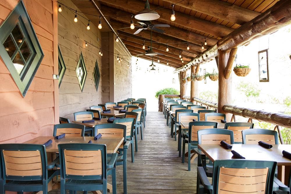 Saturdays and Sundays feature one of the most extensive brunches in the area, and on a daily basis, the famous salad bar provides more options than any other in the region. Four separate rooms, each with its own stone fireplace, are available for large parties, with seating ranging from 24 to 73 guests. An outdoor patio dining area is also an option.