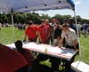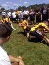Several college coaches also attended the competition. There were certainly some big boys participating in the events but the most high-profile was UConn commit defensive end Brendan Battles-Santos, 6-foot-3, 250, from Nauset Regional in North Easton, MA. His team won the single elimination tug-o-war title, the last competition of the day, with him in the first position.