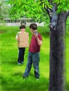 In the book Squirrel Rescue, a baby squirrel has fallen out of his nest and suddenly interrupts a game of catch. Knowing what to do, the two boys demonstrate how to handle the animal properly and what to do when they find the squirrel's sibling. Placing them safely in a box, the two boys retreat to the house so as not to scare the mother away while she recovers her babies.