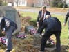 The most solemn moment of the commemoration was the annual placement of wreaths at the base of the park's war memorials. A starker silence fell over the already somber crowd, as men removed their hats and many onlookers brushed away tears.