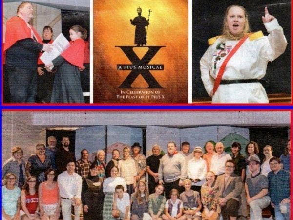 In August of 2016 After an international potluck luncheon there was a preview of the musical. Fr. Erik was inspired to produce the musical because of the interesting life story of Pope St. Pius X previously known as Giuseppe (Joseph) Sarto. Pope Pius X is perhaps best remembered for his encouragement of the frequent reception of Holy Communion, especially by children.