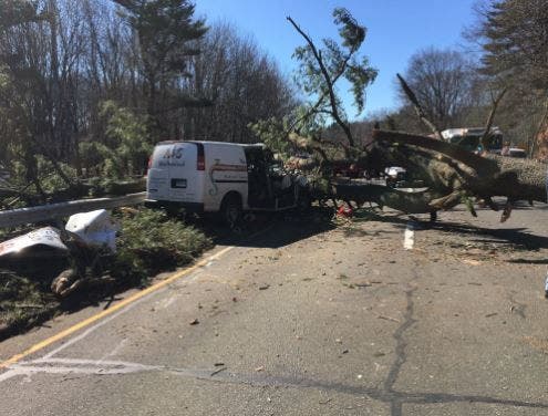 DERBY, CT — Two people with A&S Mechanical in Shelton have been identified by state police as the two people injured Thursday morning on Route 15 (Wilbur Cross Parkway) when a tree snapped by heavy winds fell on their truck near exit 58 between Derby and Orange.
