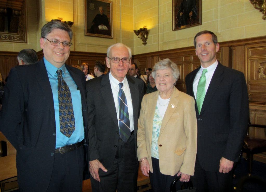 Judge Knierim attended Wednesday’s meeting with his wife, Gloria. His son, Paul J. Knierim, also a former Simsbury probate judge, is the Connecticut’s current Probate Court Administrator.
