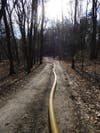 The roughly 30 x 40-foor structure is part of the rear lot, which also meant the Simsbury Volunteer Fire Company had to snake a long, thick yellow hose to the barn.