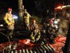 There were more than half a dozen fire trucks on the scene and about two dozen firefighters, many whom were covered with soot and steaming as they removed their protective gear and grabbed some water.