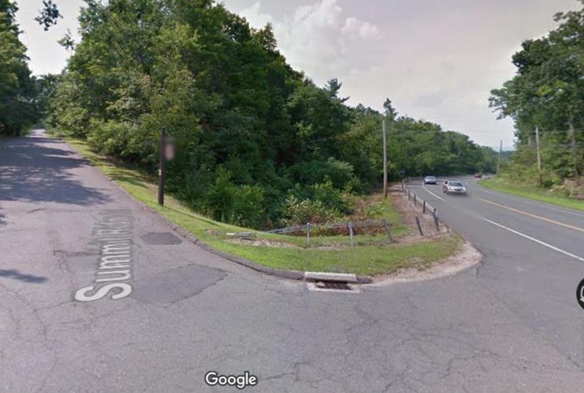 So how exactly do you get there? The park entrance is situated on Summit Ridge Road in Simsbury, off Route 185. Whether you're driving westbound down the mountain from Bloomfield at 300 miles an hour, or up the grade eastbound from Simsbury at about 5 miles an hour, you need to keep a sharp eye out for the miniscule sign on the west side of the roadway, which is slightly set back to further enable the chance to miss it, as seen below.