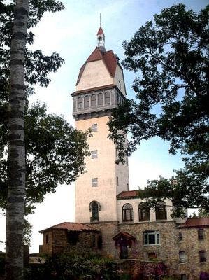 Offering panoramic views of the Farmington River Valley and the Hartford skyline from elevation of more than a thousand feet, the 165-foot tower was constructed in 1914 as the summer home and retreat of Gilbert Heublein, a food and beverage magnate most noted for manufacturing Smirnoff vodka and A.1. steak sauce.