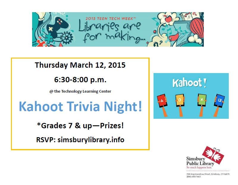 Kahoot Trivia Night for Teens @ Simsbury Public Library