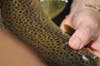 It’s for the Farmington River survivor strain brown trout program, in which biologists take fish that have survived in the river for some time or were born in it for breeding. The practice is aided by small tags behind the eye of the fish that are colored based on the year they were stocked and placed according to their size classification at the time.
