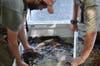 Most are put right back into the river and Tuesday, 63 fish were taken to the hatchery in Burlington for breeding. They will eventually be returned to the river. The program has worked very well and has helped produce a population of brown trout that is increasingly reproducing in the wild, Hagstrom said