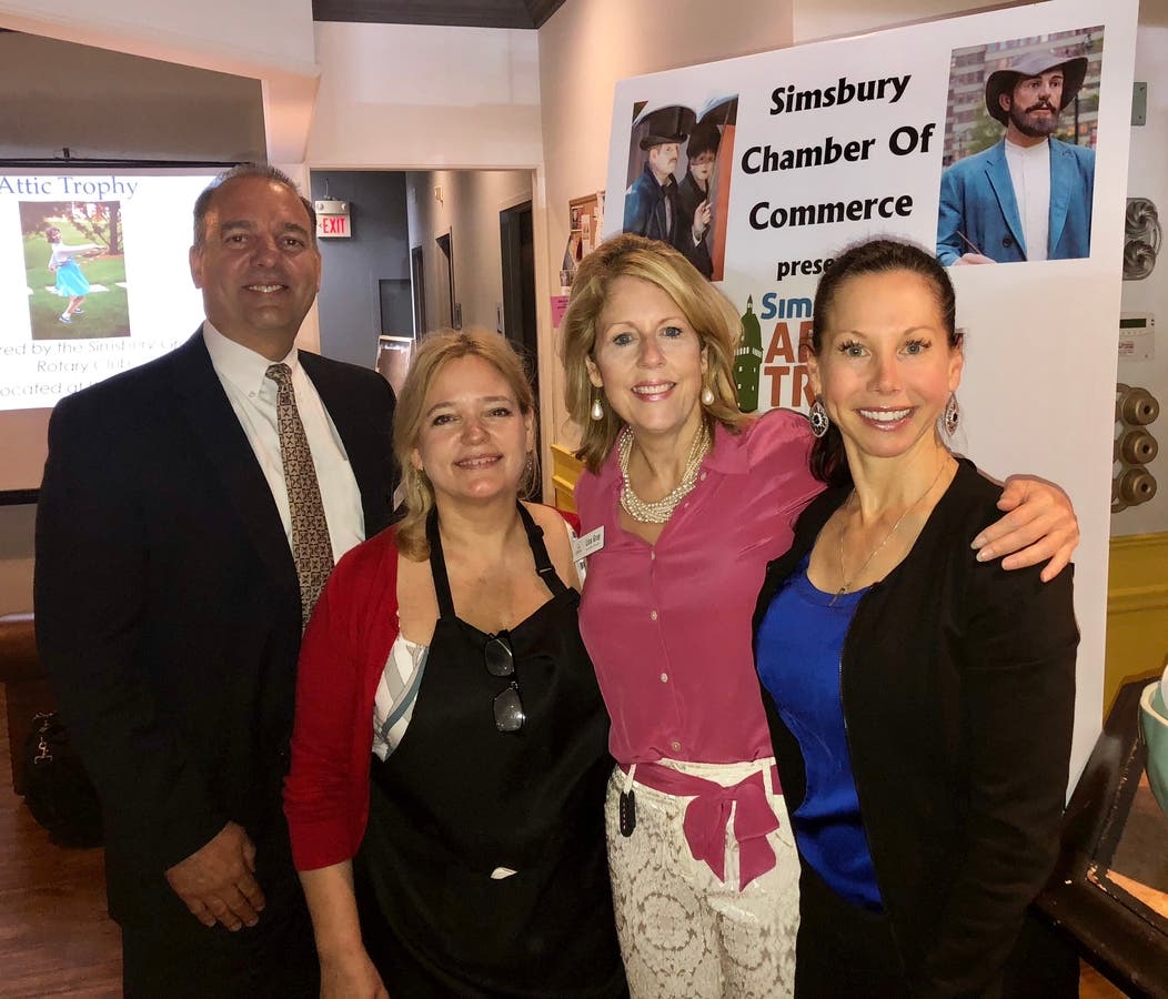 PHOTO: Simsbury Chamber of Commerce President Louis George of Hassett & George, P.C., Ana Oliveira of Ana’s Kitchen, Simsbury Chamber of Commerce Executive Director Lisa Gray and Simsbury Chamber of Commerce Publicist Alisa Picerno of Alliances By Alisa Media Relations celebrate the official launch of the Simsbury Chamber Art Trail in style at the exclusive Champagne Breakfast event, hosted by Ana’s Kitchen.