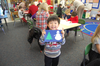 Second photo (contributed): This Central School kindergartner’s big smile matched those of the characters on the “cheer card” he made for an elderly resident of McLean in Simsbury.