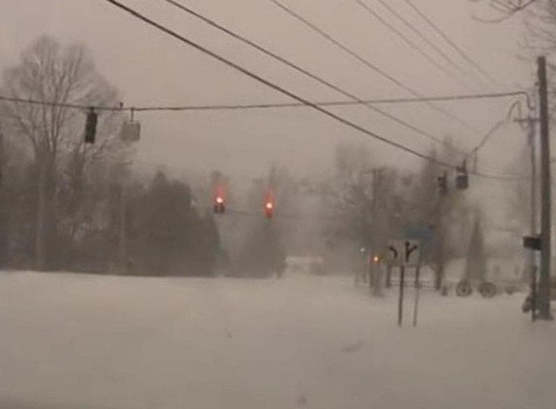 SIMSBURY, CT — A Simsbury police officer on patrol during Tuesday morning's blizzard provided residents a first-hand look at the storm, with reminders to avoid traveling if at all possible.
