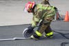 For Hose/Maze Crawl, Jon Epstein, Levi Lilly and Ryan Jano had their vision obstructed and were placed on a charged hose line. Firefighters are taught that by feeling the coupling they can determine the direction to follow the hose out of danger. While blindfolded, the lead team member had to determine the correct direction to follow the hose line to safety, navigating several obstacles along the way. The team had the best time at this station with a time of 2 minutes, 24 seconds.