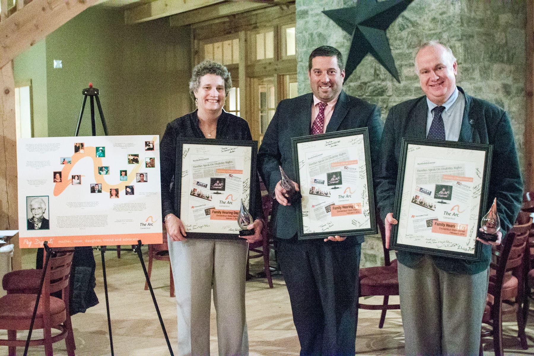 “We chose to honor Senator Beth Bye, Representative Jay Case, and Representative John Hampton with the first annual Peg Dignoti Advocacy Award for their hard work and leadership in creating the first in the nation state level Intellectual and Developmental Disabilities Caucus and for their tireless efforts to secure a pool of funding for those on the DDS residential waiting list.