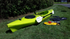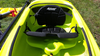 This one comes with standard front and rear deck bungees, adjustable sidelock foot pegs, a rear hatch with rear Bulkhead, removable jump seat (for small child), and Phase 3 seats. Total weight capacity is rated at 400 pounds, and is suited for paddlers below 330 lbs.