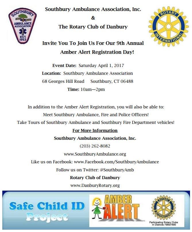 Southbury Ambulance Association (SAA) will sponsor and host the 9th annual Rotary AMBER Alert Child ID Session.