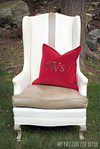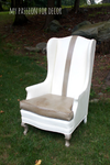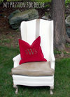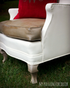 I adore this chair and I'm so happy with how it turned out! OH how I wish there would have been two of these chairs at the barn sale! I'm glad I was able to get this one however! I'm happy we have this beauty sitting in our new family room. I've sat in the chair and I have to say it's super comfy (the cushion is down filled so how can it not be, right?). The painted surface doesn't feel like a painted surface at all. The hubby was worried the paint would crack and the wax would wear off on our clothes. I assured him this wouldn't happen....guess what? I was right! The paint is wearing well and staying right where I put it!
